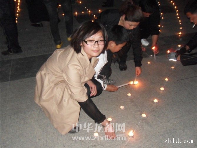 4月18日晚,在市區(qū)五一廣場,網(wǎng)友點燃了為玉樹災區(qū)祈福的蠟燭。