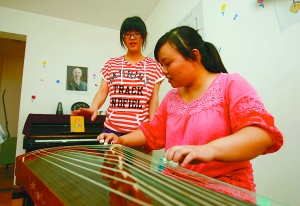 為了工作上的應酬,不少白領到專業的音樂教室學習彈古箏。 記者 吳子敬 攝