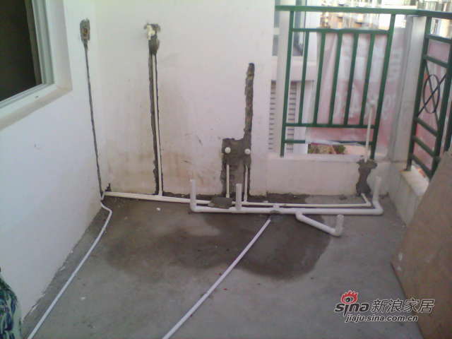 陽臺水電改造效果,細細的小水管是為了排柜機的空調水