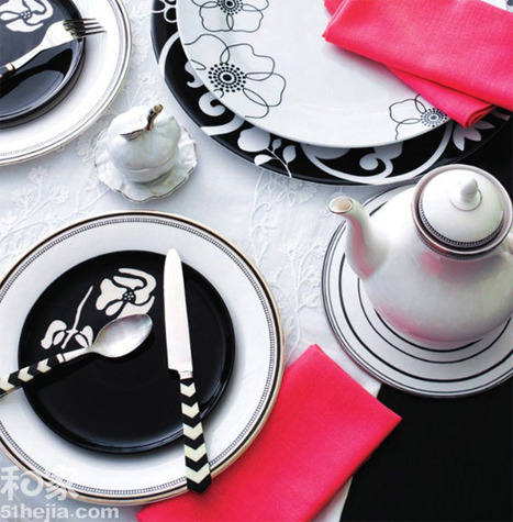 黑與白制造出完全的幾何效果,因此不要羞于拿不同的圖案式樣做搭配,最后用彩色的亞麻制品提亮你的餐桌,比如粉色的餐巾。