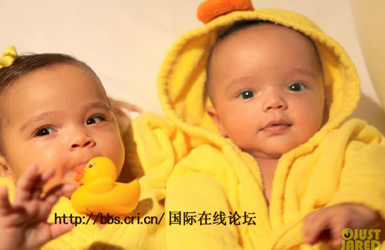 自從瑪利亞·凱利在今年4月產下龍鳳雙胞胎以來就一直盡力躲避公眾的視線。但是凱利的雙胞胎夢露和摩洛哥將迎來首次公開亮相,一家4口近日接受了芭芭拉·沃爾特斯的采訪。此次兩位雙胞胎亮相,粉嫩可愛的小寶寶身穿黃色嬰兒服,從膚色到長相都和爸爸 Nick Cannon極其相似。