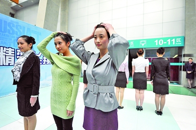 昨天東航“海選”現場,美女們進行形體展示。劉 瀏 攝