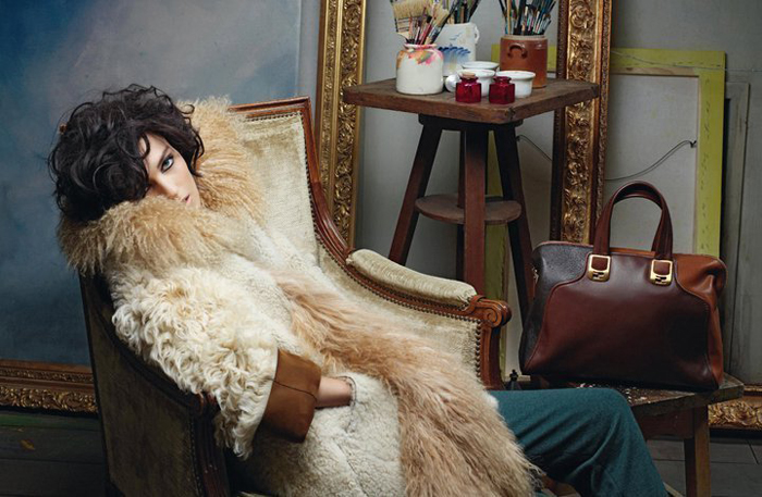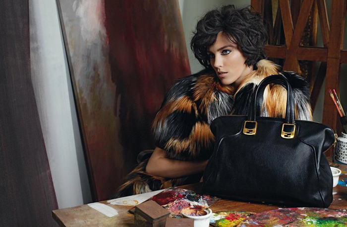 Fendi 2011秋冬廣告大片正式出爐,延續著品牌廣告一向由老佛爺Karl Lagerfeld掌鏡的傳統,超模Anja Rubik仿佛人體模特置身于畫室中,優雅又散發著魅惑性感的味道,整體畫面充滿了油畫版的美感。