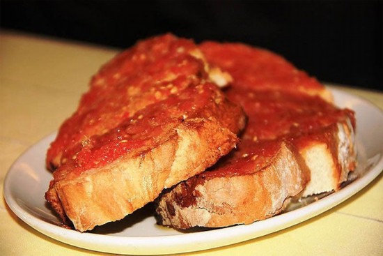 西班牙早餐Pan a la Catalana或者是Pan con Tomate(一種面包),西班牙的早餐一般很簡單,但是卻很美味。就是把新鮮的大蒜和成熟的番茄醬擦在面包上,然后加少許橄欖油和鹽。為了滿足更多的需求,也可以在面包的最上面放上些奶酪,火腿或者香腸