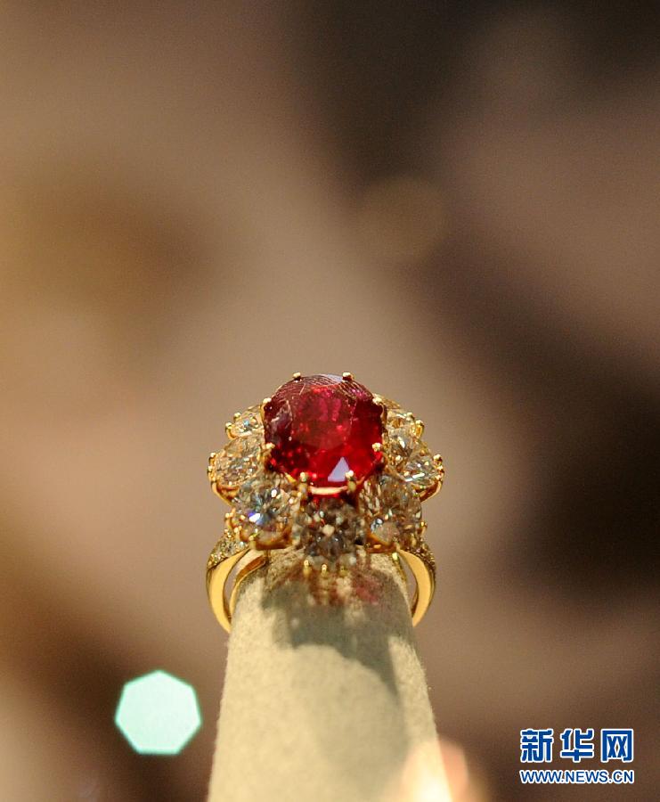資料圖:9月14日,在俄羅斯首都莫斯科,伊麗莎白·泰勒的戒指陳列在展區。新華社/法新