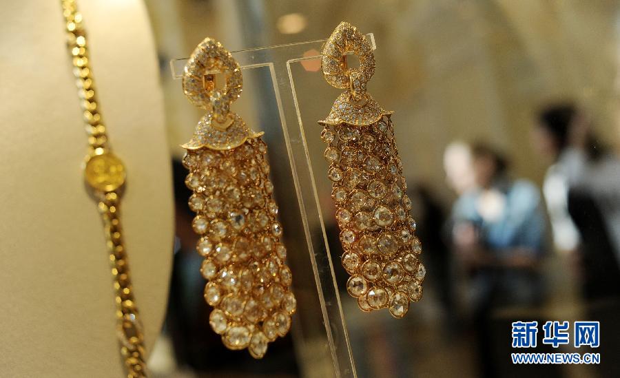 ??? 資料圖:9月14日,在俄羅斯首都莫斯科,伊麗莎白·泰勒的鉆石耳環陳列在展區