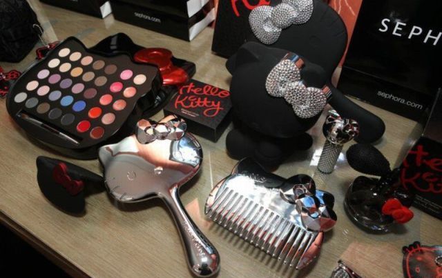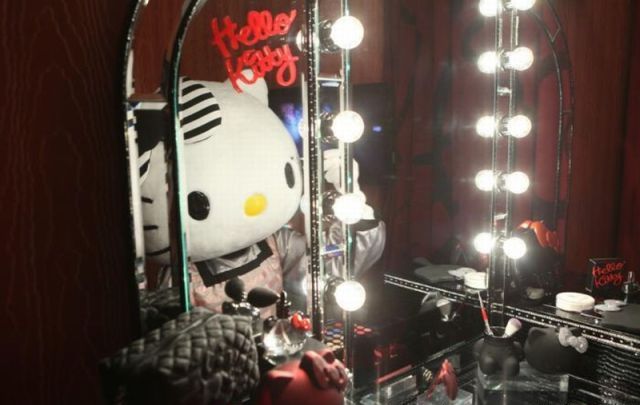 該套房的另一大特色,就是擺在房間梳妝臺上的那些超萌的高檔彩妝產品及用具。Hello Kitty加美妝,有多少女孩能hold住呢