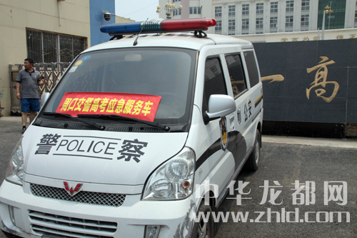 周口市交警支隊在每個考點設立了高考應急服務車。