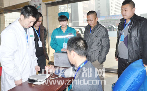 醫(yī)務(wù)人員為代表、委員們測量血壓。記者 王映 攝