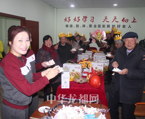 ????春節過后,許多老人再度空巢獨居,生活變得乏味無趣。為此,智慧養老社區發揮養老網絡平臺的“智慧”功能,在眾多愛心企業的參與下,從社區網絡上選出14名2月份出生的老人,為他們舉辦了一場生日會。