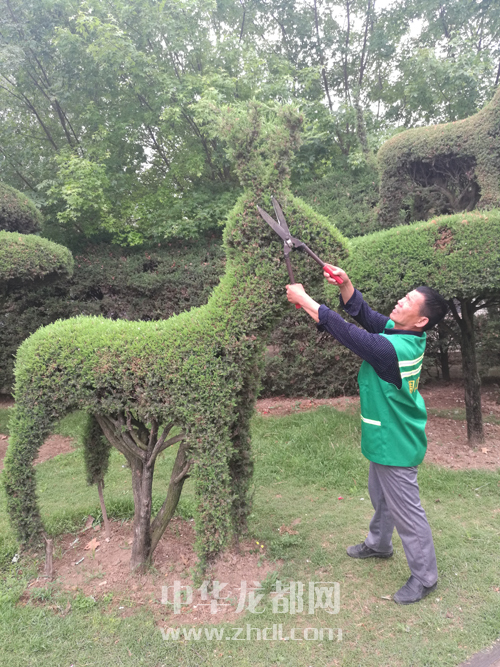 ????在市人民公園,周口晚報(bào)記者見(jiàn)到王廷林時(shí),他正在拿著剪刀給樹(shù)木修剪枝條。經(jīng)過(guò)他的修剪,園里的樹(shù)木呈現(xiàn)出各種形態(tài):“花瓶”、“孔雀”、“駿馬”……形態(tài)各異的造型中,一棵“二龍戲珠”的景觀樹(shù),視覺(jué)效果極佳,這是王廷林的得意之作。