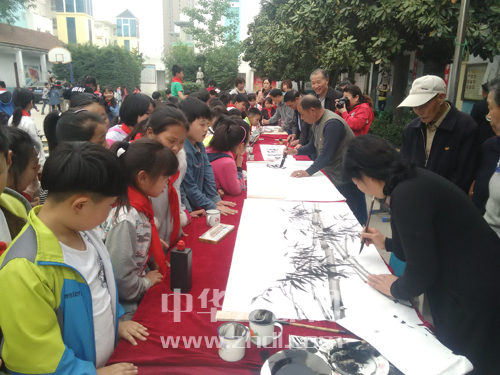 老年書畫愛好者校園揮毫 小學生感受傳統文化魅力