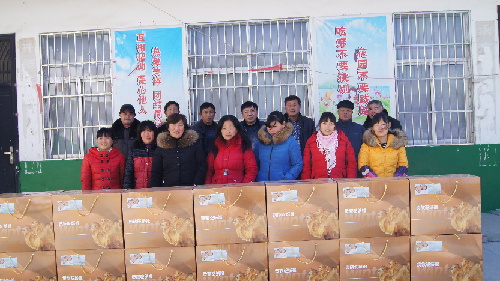 ????朱磊,秋渠鄉劉小寨村村民,近年來在外經商,小有所成。2013年春季,平時很少回家的朱磊回到家鄉來到了自己的母校——秋渠鄉劉小寨小學,看到學校大門、圍墻、廁所失修,當場拿出5萬元現金,對學校的環境進行改造。從此,學校的情況始終牽掛著他的心。當年夏季,他從千里之外給學校老師每人寄純銀茶杯一個,給全校學生每人訂做校服一套。當年春節,再給全校老師每人寄來東北貢米一袋。此后,重要節日,學校老師總能收到朱磊寄來的禮物。2014年春節老師們收到的是價值2000多元的東北水產海鮮大禮包一份,內有大蝦、蟹、海參、魷魚、黃魚等,2015年春收到的是高級多用鋼筋鍋。有老師算過,三年來,朱磊為學校和老師共捐助實物、現金10萬元之多。