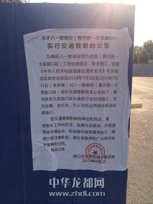 ????當日下午,周口晚報記者在八一大道南段看到,原火車站鐵道口至太昊路路段的雙向機動車道已全線封閉,“過往車輛請繞行”的交通警示牌也已豎立在路口,幾輛施工車輛正在現場緊張忙碌地備料、開挖路面。