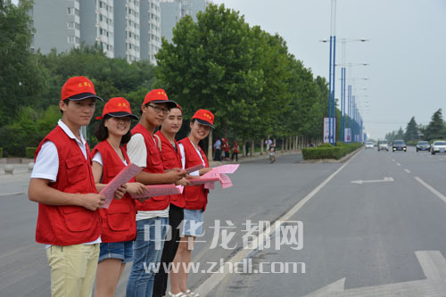 ????7月9日,周口市公安局文昌分局組織30名青年志愿者走上街頭,開(kāi)展各項(xiàng)志愿服務(wù)活動(dòng),助力省級(jí)文明城市創(chuàng)建工作。圖為青年志愿者走上街頭發(fā)放宣傳頁(yè),宣傳交通法規(guī)。