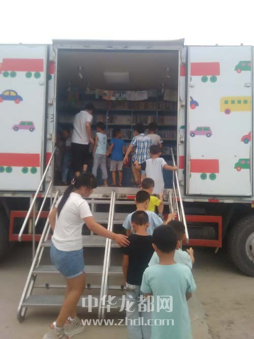 ????本報訊 8月22日,一輛帶著5000多冊兒童讀物的流動圖書車,從北京來到鄲城縣秋渠鄉希望小學。該校300多名留守兒童有的上車讀書,有的簽字借閱,都特別高興(如圖)。