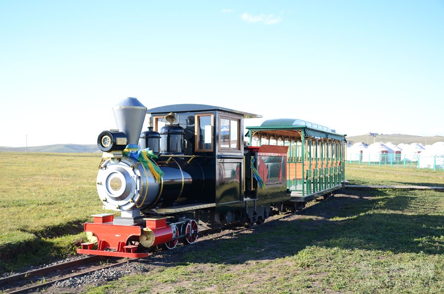 ????小火車帶我們?cè)诓菰暇従彺┬校瑳鲲L(fēng)習(xí)習(xí),一路經(jīng)過(guò)風(fēng)車、駿馬、鮮花,一派迷人的草原風(fēng)光。