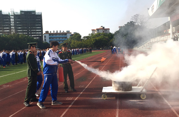 消防應急演練結束后,消防官兵向全體師生現場講解如何使用滅火器,并由學生代表實際操作滅火器撲救初期火災,升旗儀式上還進行了法制安全教育。