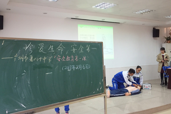 在學術報告廳內,老師為學生講解校園安全知識,并由三位代表學生現場演示如何為溺水后的學生進行心肺復蘇。全校近2000位學生和老師在現場或者通過班級內的視頻直播觀看學習。高二(4)班學生鐘靜文表示,比起以前的班會課,這次的“安全教育第一課”將講解和演練相結合,能更直觀地學習到消防知識。 此外,廣州市各高中都利用開學禮、班會課、課堂教學、專題講座、應急疏散演練等方式開展“安全教育第一課”。在廣州市第六中學,場景模擬和應急疏散等方式讓學生接受了一場別開生面的安全教育。 “過年了,我來給爸媽炸個油角吧!”一名男生得意洋洋地當起了“廚神”,卻被濺起的油星燙傷了手背。“哎呀,乖孫!燙傷了!趕緊抹醬油吧!這個土方法最管用了!”男生的“奶奶”忙不迭地說。逗趣的演繹讓全班人樂不可支。一名男生說出了正確的方法:“用流動的冷水沖洗燙傷部位最少10分鐘,情況嚴重時需送醫院治療。不要涂抹油脂藥膏等物品,因為油脂會阻止熱量散發,使燙傷更嚴重。在燒燙傷處涂抹膏藥,是后續治療時采取的。”除了燒燙傷的應急處理外,學生們還現場演繹了食物中毒、異物入眼、關節扭傷、魚刺梗喉等意外事件的緊急處理誤區,并認真學習了正確的處理辦法。 據悉,“安全教育第一課”還將延續到全市中小學(2月13日開學)、中職學校(2月20日開學)。目前,廣州市教育部門創新學校安全教育新途徑、新方法,完善學校安全教育工作機制,并建立了安全教育信息化平臺。截止至目前,全市已有3172所學校全部開設安全教育課程,42473位老師參與授課,140多萬名學生和家長參與在線學習。 |