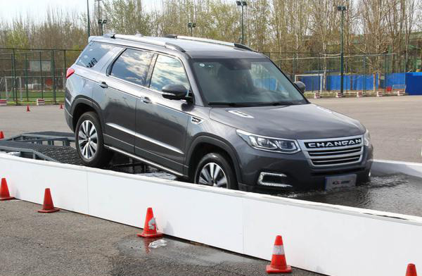 下面的涉水環(huán)節(jié),長安CS95表現(xiàn)非常穩(wěn)健;涉水之后就來到了起伏和顛簸路面,稍軟的懸架使得車內(nèi)乘客并未感覺不舒適。