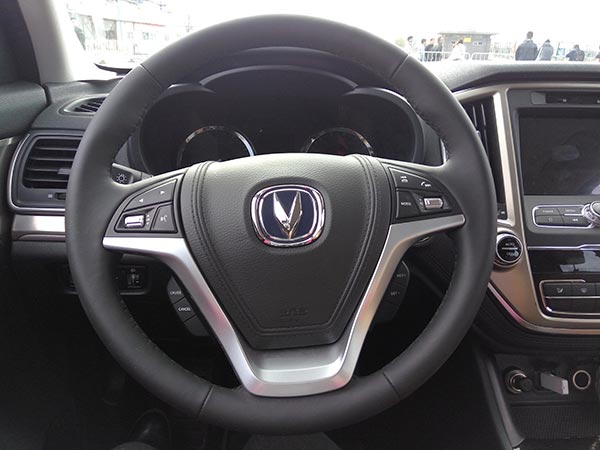 內(nèi)飾整體的造型設計凹凸有致,層次清晰。三幅式多功能方向盤尺寸大小合適,軟性材質(zhì)的包裹也讓車內(nèi)做工顯得比較細膩。