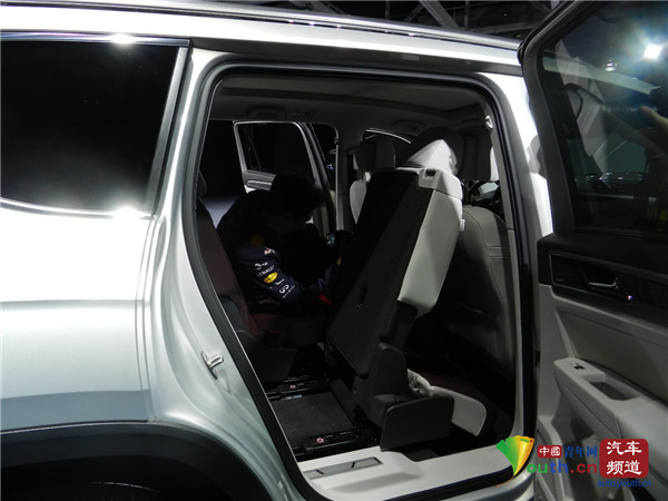既然是7座SUV,那么就不得不說一下它的二三排的乘坐空間,我們先讓一米八左右的體驗者坐入第三排,調節第二排座椅的位置,讓體驗者膝部的空間一拳,頭部的空間四指,這樣坐姿完全不會難受;我們再讓體驗者坐到第二排,此時發現,腿部空間依然有一拳三指,頭部空間四指,真·七座不是吹出來的!