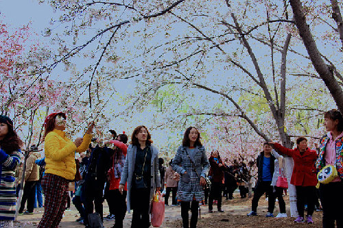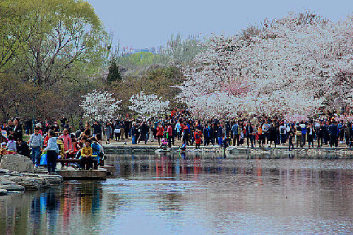 ????日前,第29屆北京玉淵潭櫻花節(jié)開幕!游客在里面可以欣賞到20個品種2000株櫻花開放的壯美奇觀。盛開的櫻花呈現(xiàn)出堆云疊雪的景觀,引人入勝,春風拂來,櫻花瓣飄搖落下,游人在公園內(nèi)賞櫻、拍照真是一幅絕美的畫面。成雪峰/攝