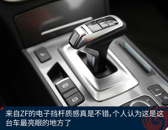 當然,這些東西同級別中或許都能看到,不算稀奇,如果說這臺車與藍標的最大區別,就得說儀表板中間的電子擋桿了,第一眼看到就被它的質感吸引了,一點兒都不像在15萬這個級別中能看到的配置,與自家H2s一樣來自ZF的電子擋桿握感完美,操作方便,跟奧迪、寶馬等車的操作體驗沒什么區別。
