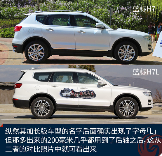 提到加長,我腦子中的第一反應是軸距加長幾十甚至上百毫米,然而,哈弗藍標H7L并不是這樣。縱然其加長版車型的名字后面確實出現了字母「L」,但那多出來的200毫米幾乎都用到了后軸之后,這從二者的對比照片中就可看出來。