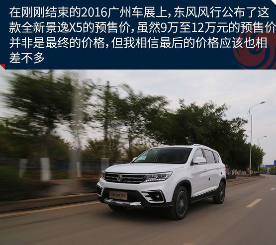 在剛剛結束的2016廣州車展上,東風風行公布了這款全新景逸X5的預售價,雖然9萬至12萬元的預售價并非是最終的價格,但我相信最后的價格應該也相差不多,最便宜的車型價格應該會在8萬至9萬之間,而頂配車型或許不高于12萬。