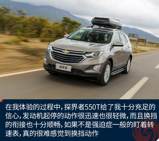 在我體驗的過程中,探界者550T給了我十分充足的信心,發動機起停的動作很迅速也很輕微,而且換擋的銜接也十分順暢,如果不是強迫癥一般的盯著轉速表,真的很難感覺到換擋動作。