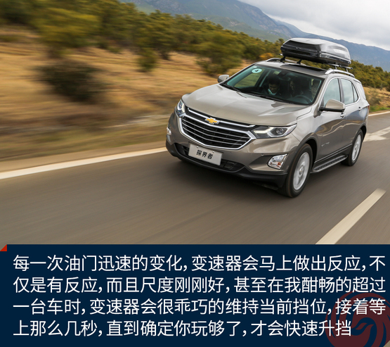 日常駕駛時的平順已讓我有些驚訝,而我進一步試著去挑逗油門時,探界者給了我更大的驚喜,每一次油門迅速的變化,變速器會馬上做出反應,不僅是有反應,而且尺度剛剛好,甚至在我酣暢的超過一臺車時,變速器會很乖巧的維持當前擋位,接著等上那么幾秒,直到你又安靜地做回美男子之后,才會快速的升到合適的擋位,這種高度的默契感是原來國產的雪佛蘭車上未曾見到的。