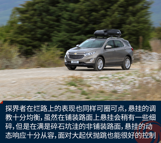 探界者在爛路上的表現也同樣可圈可點,懸掛的調教十分均衡,雖然在鋪裝路面上懸掛會稍有一些細碎,但是在滿是碎石坑洼的非鋪裝路面,懸掛的動態響應十分從容,而且面對一些大起伏的拋跳也能很好的控制車身的起伏。