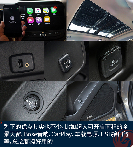 內飾當中,首先要說的可能是座椅,包裹性和舒適性都較好,而且除了電動調節還具有三擋加熱和通風,十分的實用。當然了,另外一點,探界者配備了十分豐富的主動安全配置,當偵測到前方和后方有碰撞風險時,座椅會有節奏的震動,來起到警示作用。除了前后排的空間表現不錯以外,后排地臺是平的,后排座椅也可以全平的放倒,抽空還能方便做一些羞羞的事,哈哈,挺不錯的。剩下的優點其實也不少,比如超大可開啟面積的全景天窗、Bose音響、CarPlay、車載電源、USB接口等等,總之我覺得挺好用的。