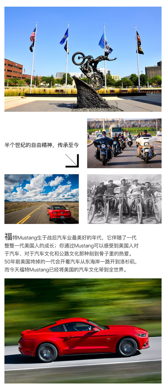 只要你來過美國,就會驚異于美國人對哈雷·戴維森,以及福特Mustang的熱愛,這種熱愛不分年齡不分性別,你會在荒蠻的西部公路上遇到招搖過市的哈雷車隊,也有可能在一家不知名的咖啡廳里邂逅一位開著Mustang的小鎮姑娘。
