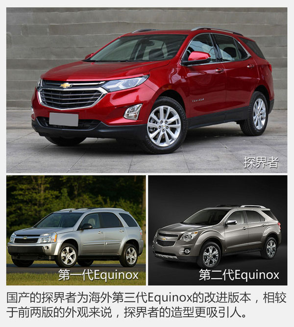 探界者其實并非科帕奇的換代車型,而是完完全全的一款全新車型,國產(chǎn)探界者也并不是第一次出現(xiàn)在世人面前;探界者早在北美市場供應(yīng),名為Equinox的它是通用汽車在北美市場最受歡迎的車型之一。這次引入國內(nèi)的探界者已經(jīng)是它的第三代車型,而第二代在整個北美市場位列全部車型銷量榜的第15位,可見其可靠的實用性和較高的性價比受到了多大的認可。
