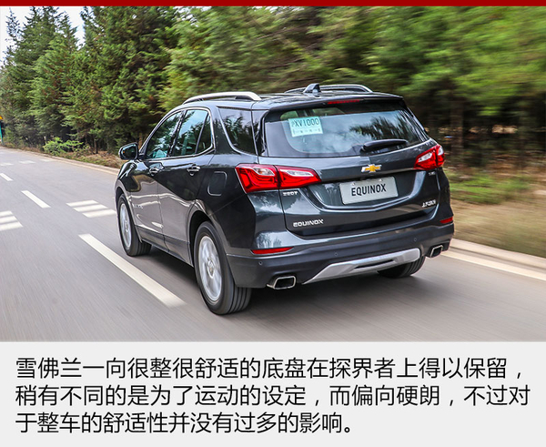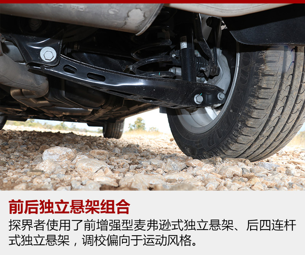 探界者的底盤受到雪佛蘭運動傾向的影響,被調(diào)校的有些偏硬,這樣對于車身側(cè)傾的抑制就非常到位,面對路面上連續(xù)的起伏,緊致的懸架也帶來很強的整體感。但是當面對較大的顛簸或者減速帶一類的時候,車身就會產(chǎn)生彈跳的感覺,而且懸架的回彈稍有延遲,總有一次小幅度的二次彈跳,稍稍影響了舒適性。
