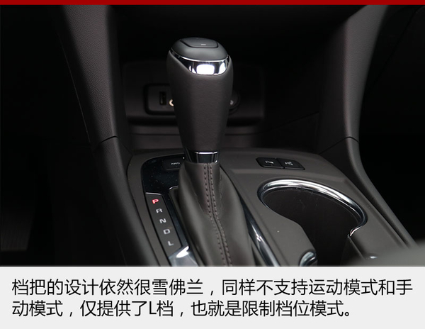 有一點我不是很明白,雪佛蘭最新的設(shè)計理念已經(jīng)開始向運動發(fā)展,但是它旗下的車型都不帶有運動模式和手動換擋模式,僅僅是提供了L檔,也就是所謂的限位檔,通過檔把上方的加減按鍵可以手動使變速箱限制在相當?shù)臋n位上,D檔模式下此按鍵無效。