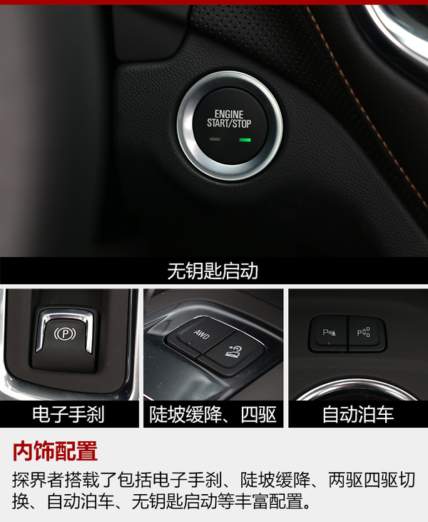 探界者與昂科威相似的尺寸與軸距面對其主要競爭對手其實并沒有任何優(yōu)勢,不過考慮到其更加實惠的售價則完全可以接受,另外從實際的空間體驗來看也沒有過多受到這些毫厘之差的數(shù)據(jù)的影響。