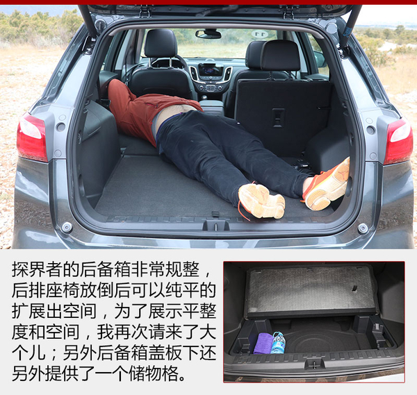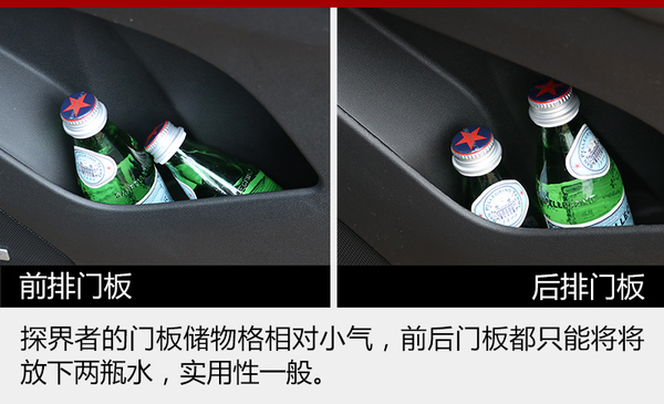 探界者作為一臺中型SUV在儲物空間的表現(xiàn)其實有些平庸,不算多的儲物格除了扶手箱以外基本沒有亮點,而且門板的儲物格也比較不實用;后備箱的空間倒是值得肯定,無論是座椅放倒后的平整和可擴展性,還是蓋板下方的小儲物格,都很靠譜。