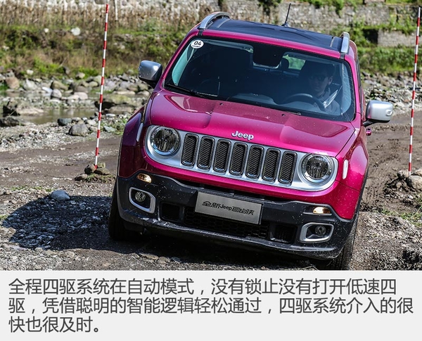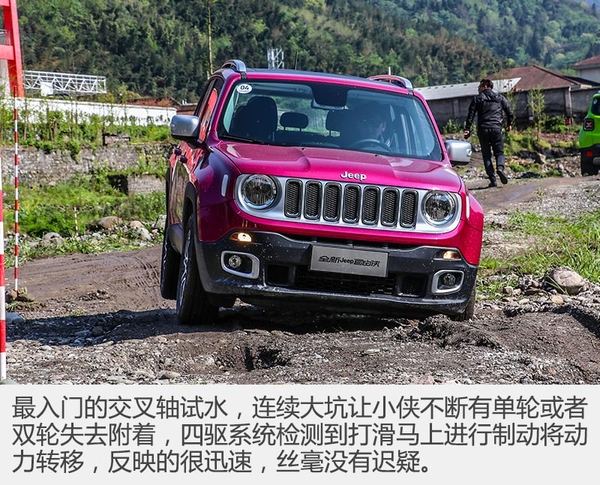 交叉軸說實話完全難不倒自由俠,憑借聰明并且果斷的四驅系統輕松通過,基本沒有空轉撓地;期間還對比了競品車型,出于某種原因就不透露車型和照片了,某V在左前輪失去附著力的情況下,撓了半天,總算勉強通過,右前輪和左后輪同時空轉的情況下,基本就歇菜了,還得靠牧馬人給扽上來,自由俠的優勢顯而易見。