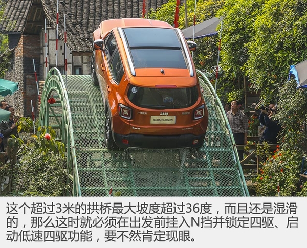 得瑟的原因在于有實力,讓同級別任何一個車型來完成,恐怕都得失敗,所以這更像是一場表演;坐在車里更加深有感觸,河道涉水不算難度,只是有些埋設的交叉軸和炮彈坑,只要速度不快就完全沒難度;然而那個又高又陡的鐵拱橋,沖上鐵橋的一瞬間就是臉朝天屁股朝地,挺嚇人的,下橋的時候就反過來臉朝地屁股朝天,也挺難受的。有驚無險無難度的自由俠在這里秀出了自己真正的實力,同級別最強四驅和最強非鋪裝通過性實至名歸。