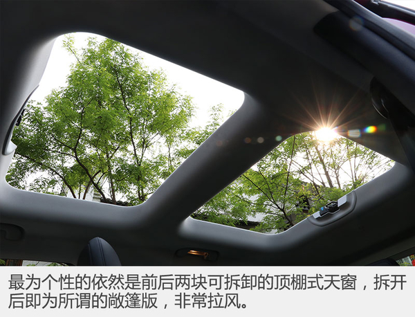 就跟一個長的很有氣質又與眾不同的姑娘一樣,自由俠怎么看都看不膩,真的是太充滿設計感,外觀內飾的每一處細節都仿佛充滿了讓你心動不已的彩蛋,等著你去欣賞和挖掘它隱藏在個性與時尚之下更深一層所體現的情懷;打著情懷的名號卻不失實用性,在空間上作為一臺小型SUV并沒有產生任何劣勢,乘坐空間的表現很優秀,而可拆卸頂棚又為車內帶來太好的通透性。