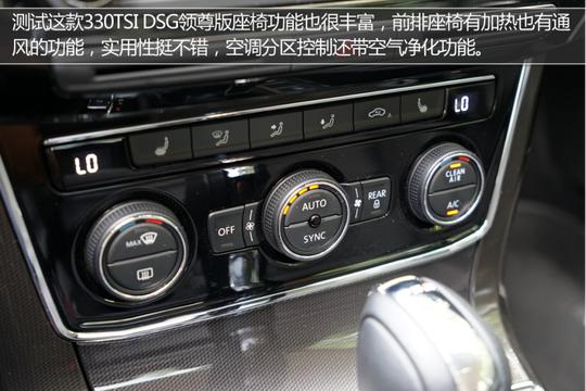 ????????測試的全新帕薩特330TSI DSG領尊版車型,外部配置也是不錯的,前后泊車雷達、倒車影像、外后視鏡加熱以及車道偏離預警等功能,都還是很實用的。