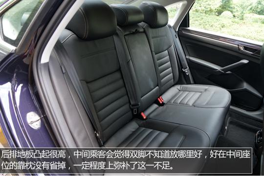 ????????全新帕薩特的內部乘坐空間還是挺大的,美中不足的是后排地板的凸起比較高,好在后排中間座位配有頭枕,而且座椅整體設計的比較寬大,乘坐舒適性還是有保證的。