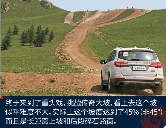 ????????經(jīng)過刺激的涉水越野,我們終于來到了此行最難的挑戰(zhàn)地,傳奇大坡。這條上山的土路從圖片上看起來不陡,實(shí)際上已經(jīng)達(dá)到了45%的坡度。人爬起來都?xì)獯跤?。而且難度大的原因是兩點(diǎn),一個(gè)是超長距離的大上坡,另一個(gè)是后端是碎石路面。你想靠沖坡根本行不通,如果動(dòng)力不足最終是無法登頂?shù)摹8不僅動(dòng)力充沛而且有4L,低速四驅(qū)模式,而且博格華納雙速TOD可以隨時(shí)分配動(dòng)力傳遞到前后軸,保障了有抓地力的輪胎有驅(qū)動(dòng)力。