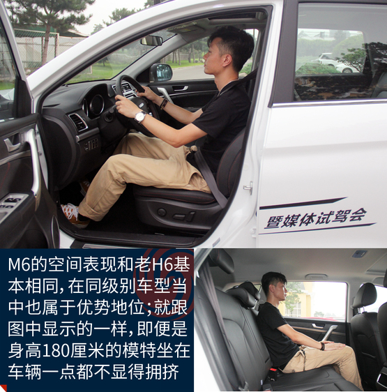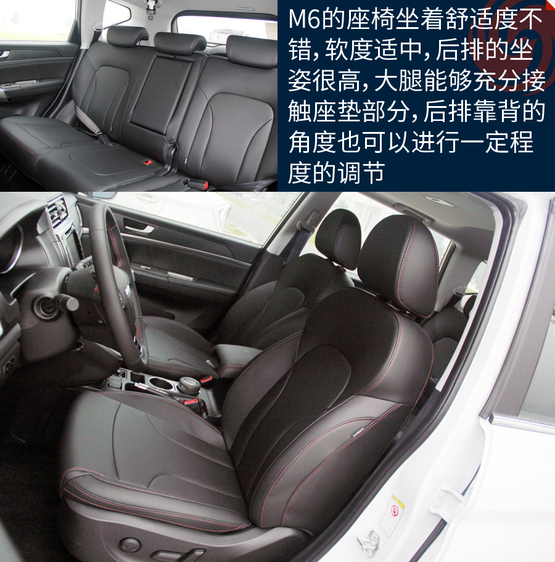 ????????M6的空間表現在同級別車型當中屬于優勢地位,主要原因就是內部空間和H6基本沒區別。特別得說新車的座椅,很柔軟、舒服,包裹性也不錯。不過坐姿真的有點高,前排座椅調到最低后還是能看到整個機艙蓋,這樣倒是為了安全性;后排的座椅還要更高一些,有點類似劇院式的設計,給后排乘客減少了壓抑感。