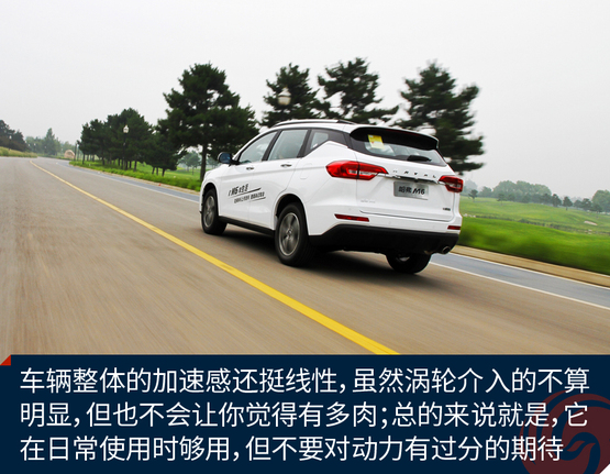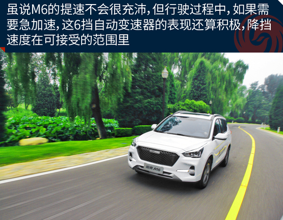 ????????6擋自動變速器的表現還算不錯,升擋很積極,前三個擋會在大約2200轉的時候升擋,如果持續穩住油門踏板,四擋和五擋會在大約2800轉/分的時候升擋;要急加速行駛,降擋的意圖還算靈敏,升擋的時機稍稍靠后一點大約在3500轉以后才會實現。整體來說,M6在行駛起來后,開起來還挺順暢,上手不難!