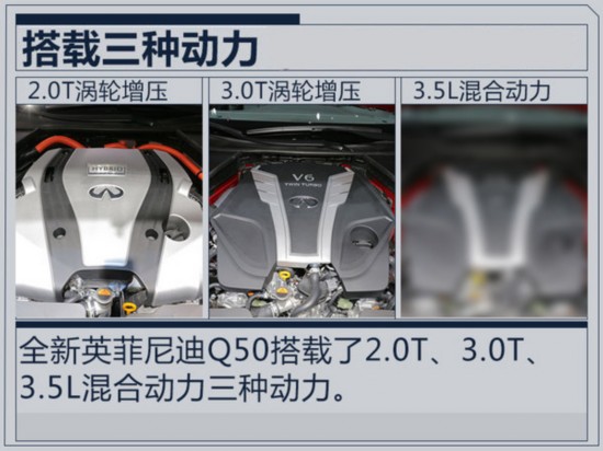 動力方面,全新英菲尼迪Q50搭載了2.0T、3.0T渦輪增壓發(fā)動機(jī)。2.0T渦輪增壓發(fā)動機(jī)最大功率155kW;3.0T渦輪增壓發(fā)動機(jī)最大功率298kW。此外,新車還增搭了一臺3.5L V6混合動力發(fā)動機(jī),屆時(shí)油耗將大幅下降。