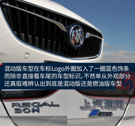 ????????仔細(xì)對比才會發(fā)現(xiàn),混動版車型在車標(biāo)Logo外圈加入了一圈藍(lán)色飾條,而除非直接看車尾的車型標(biāo)識,不然單從外觀部分還真挺難辨認(rèn)出到底是混動版還是燃油版車型。